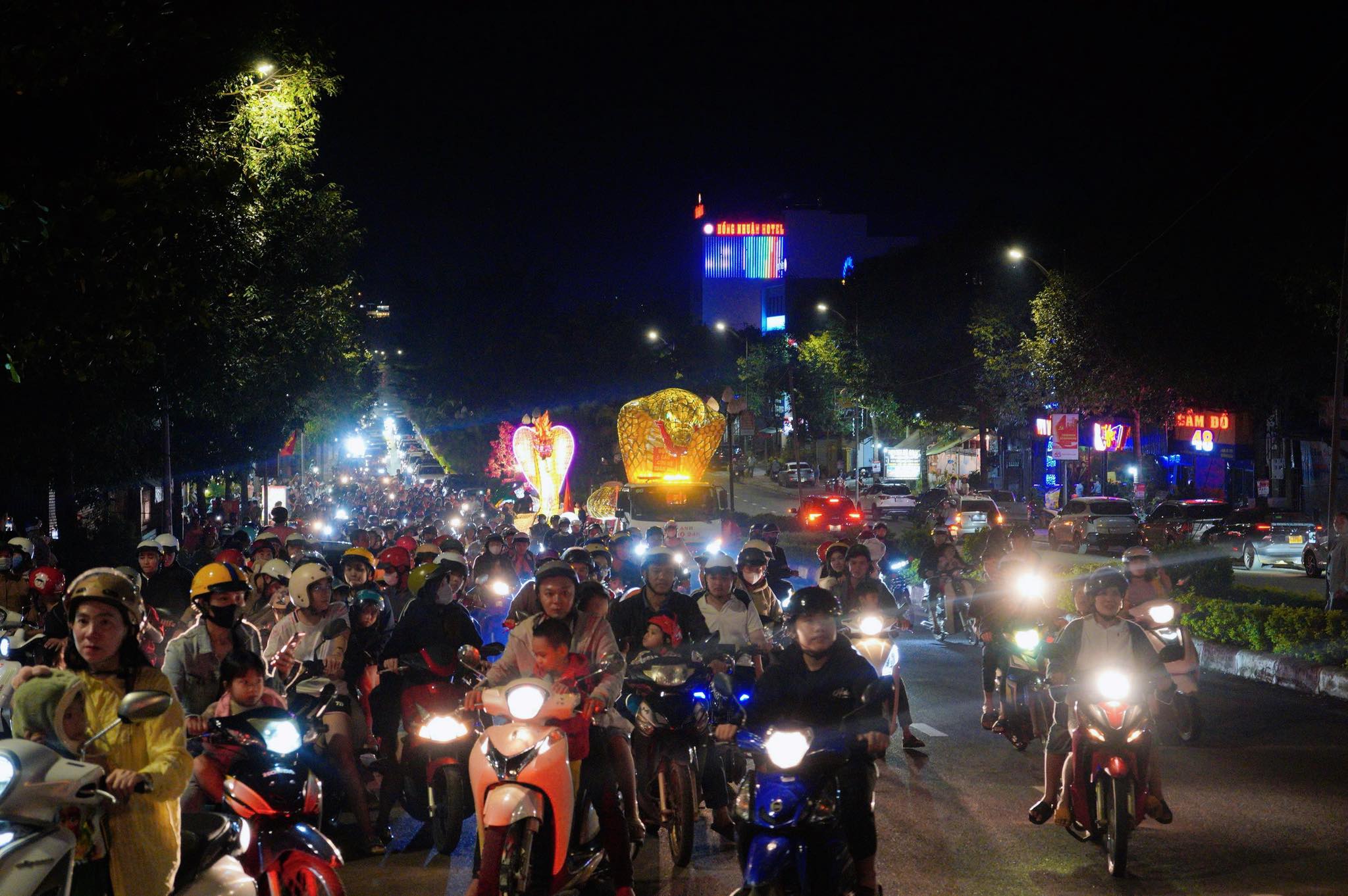Sau phần lễ, không khí đêm hội trở nên sôi động và rực rỡ hơn bao giờ hết với Lễ diễu hành Trung thu. Đoàn diễu hành đã đi qua các tuyến đường chính của phường trong tiếng trống lân rộn ràng, âm nhạc tưng bừng và ánh đèn lồng lung linh sắc màu.
