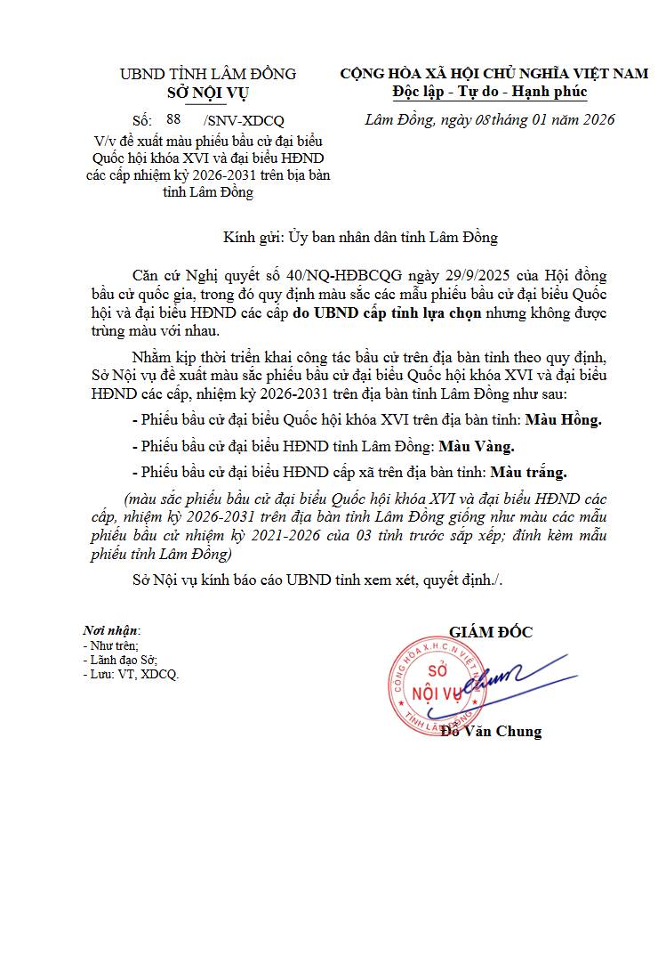 Màu sắc phiếu bầu cử đại biểu Quốc hội khóa XVI và đại biểu Hội đồng nhân dân các cấp, nhiệm kỳ 2026-2031 trên địa bàn tỉnh Lâm Đồng