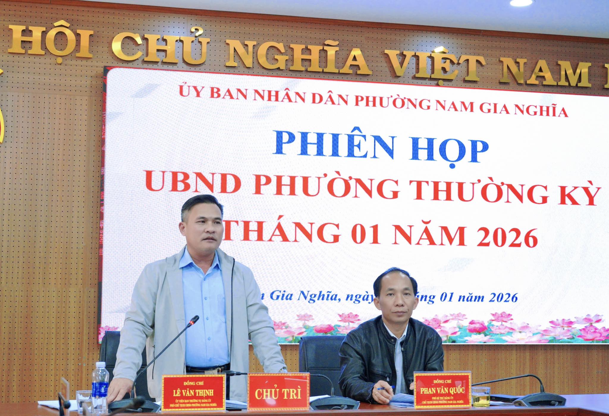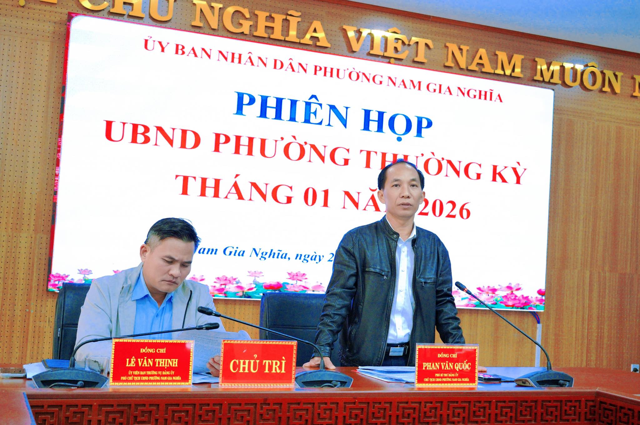 Sáng 23/01, UBND phường Nam Gia Nghĩa tổ chức Phiên họp thành viên UBND phường tháng 01 năm 2026. Phiên họp do đồng chí Phan Văn Quốc – Phó Bí thư Đảng ủy, Chủ tịch UBND phường chủ trì; đồng chí Lê Văn Thịnh – Ủy viên Ban Thường vụ Đảng ủy, Phó Chủ tịch UBND phường đồng chủ trì.