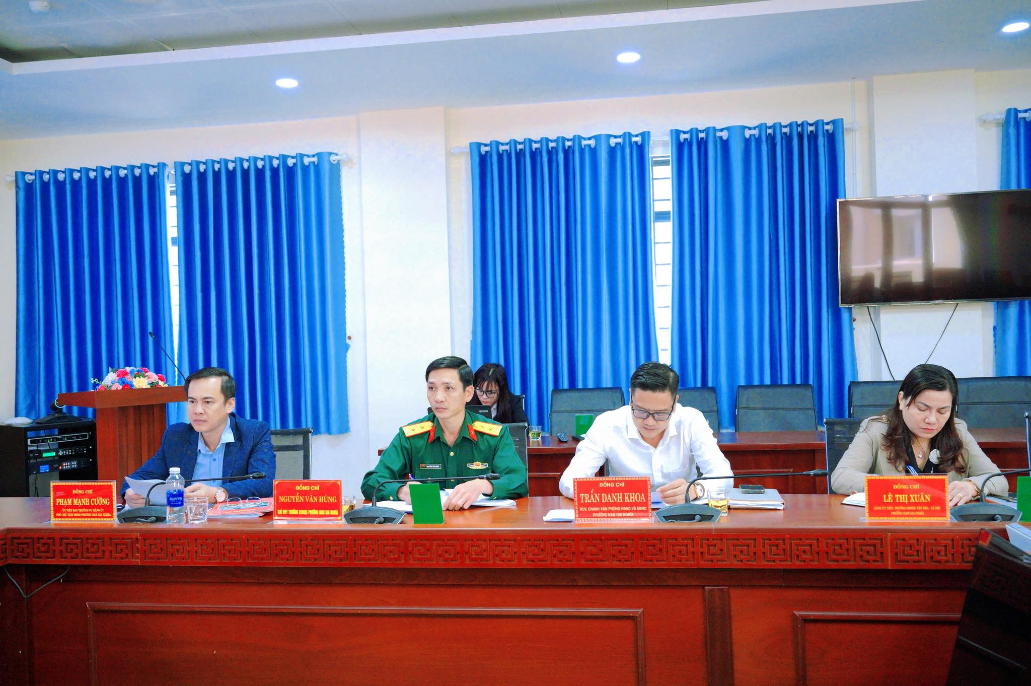 Tham dự phiên họp có đồng chí Trương Công Việt – Phó Bí thư Thường trực Đảng ủy; đồng chí Nguyễn Tiến Tùng – UVBTV Đảng ủy, Chủ tịch Ủy ban MTTQ Việt Nam phường; đồng chí Phạm Mạnh Cường – UVBTV Đảng ủy, Phó Chủ tịch HĐND phường, cùng lãnh đạo các phòng, ban, đơn vị chuyên môn thuộc phường.