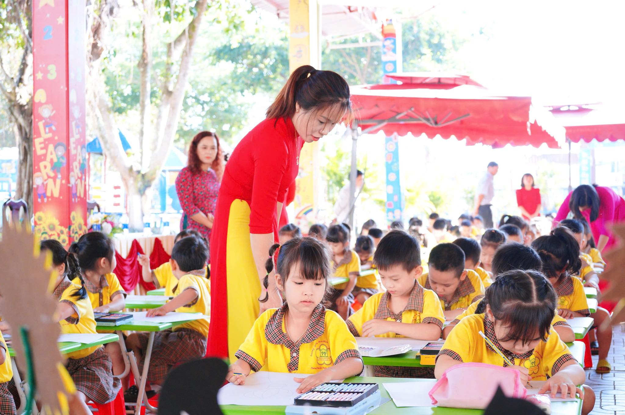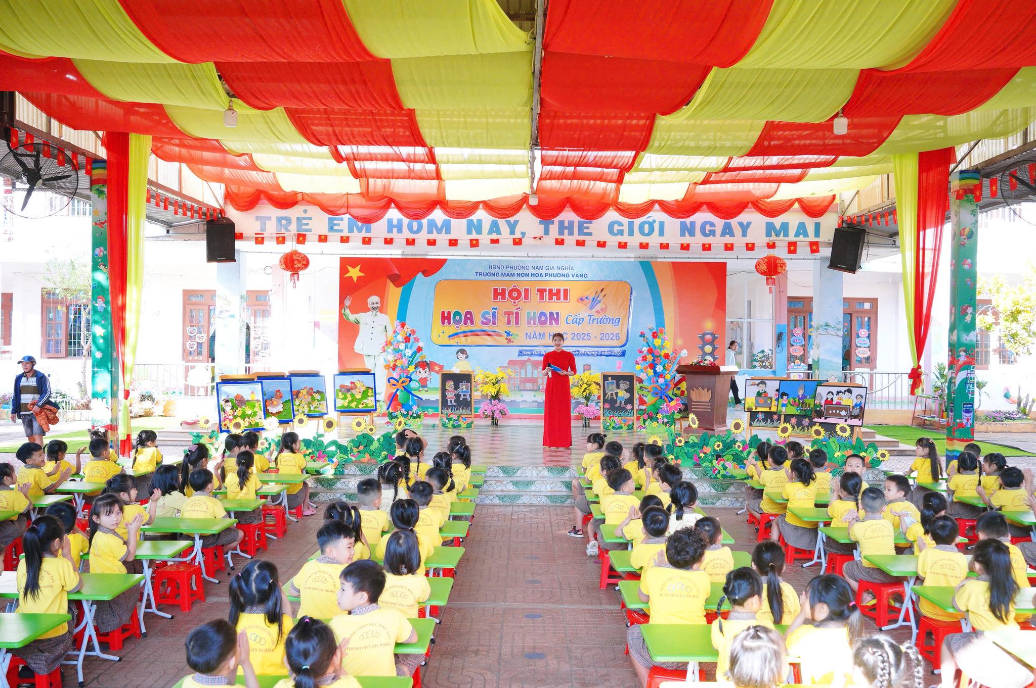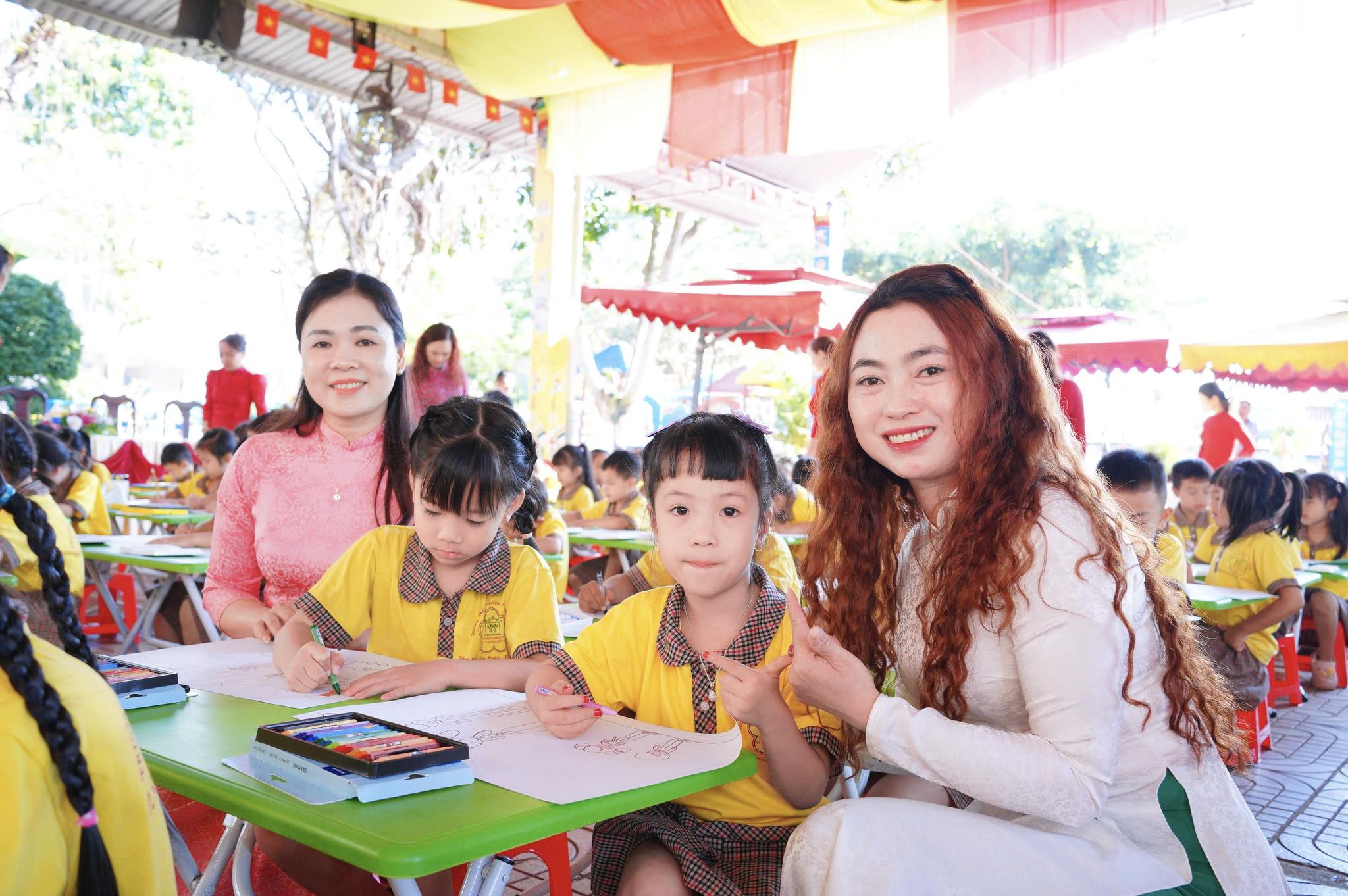 Trước đó, phần thi của khối Mầm và khối Chồi đã diễn ra trong không khí vui tươi, thu hút sự tham gia nhiệt tình của các em nhỏ. Tiếp nối thành công đó, hội thi dành cho khối Lá tiếp tục được tổ chức, tạo sân chơi bổ ích, giúp trẻ phát huy năng khiếu hội họa.