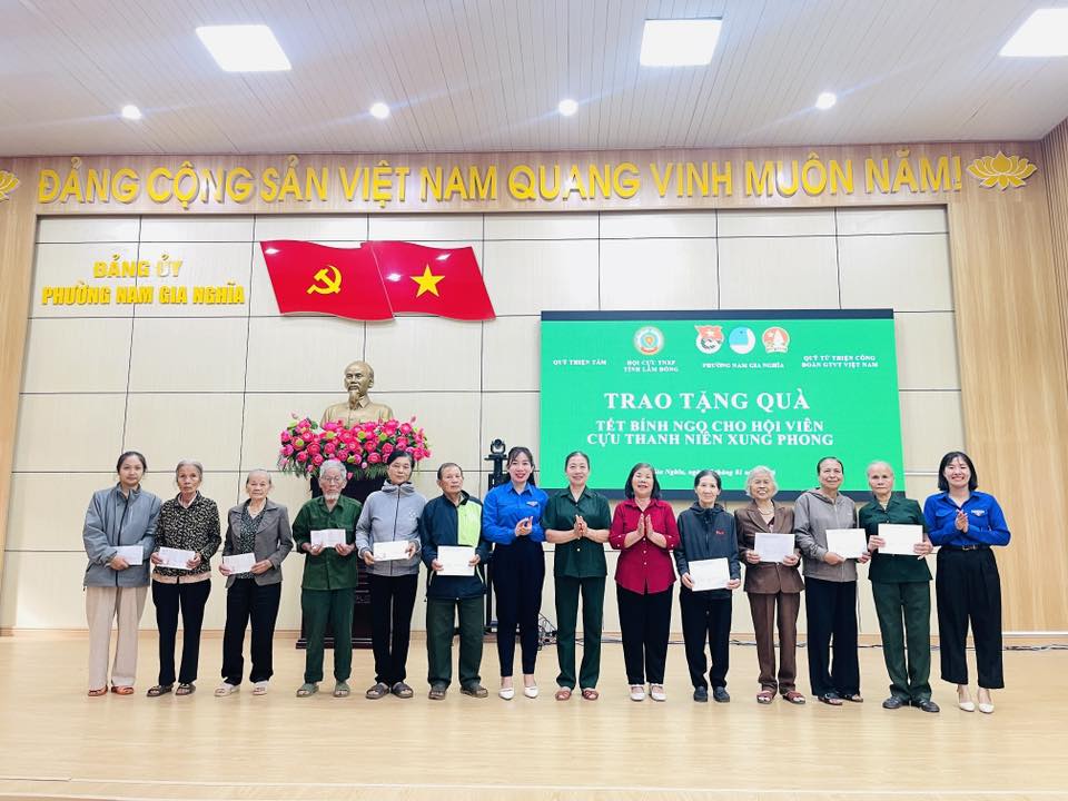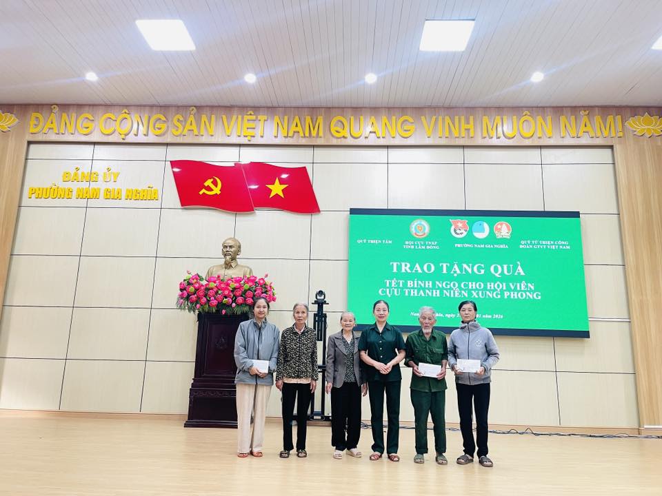 Chiều ngày 27/01/2026, Đoàn thanh niên phường Nam Gia Nghĩa phối hợp với Hội Cựu Thanh niên xung phong tỉnhQuỹ Thiện TâmQuỹ Từ thiện Công đoàn GTVT Việt Nam và cô Phạm Thị Mai (mạnh thường quân) tổ chức chương trình trao tặng quà Tết cho các hội viên Cựu Thanh niên xung phong có hoàn cảnh khó khăn trên địa bàn phường, nhân dịp Tết Nguyên đán Bính Ngọ 2026.