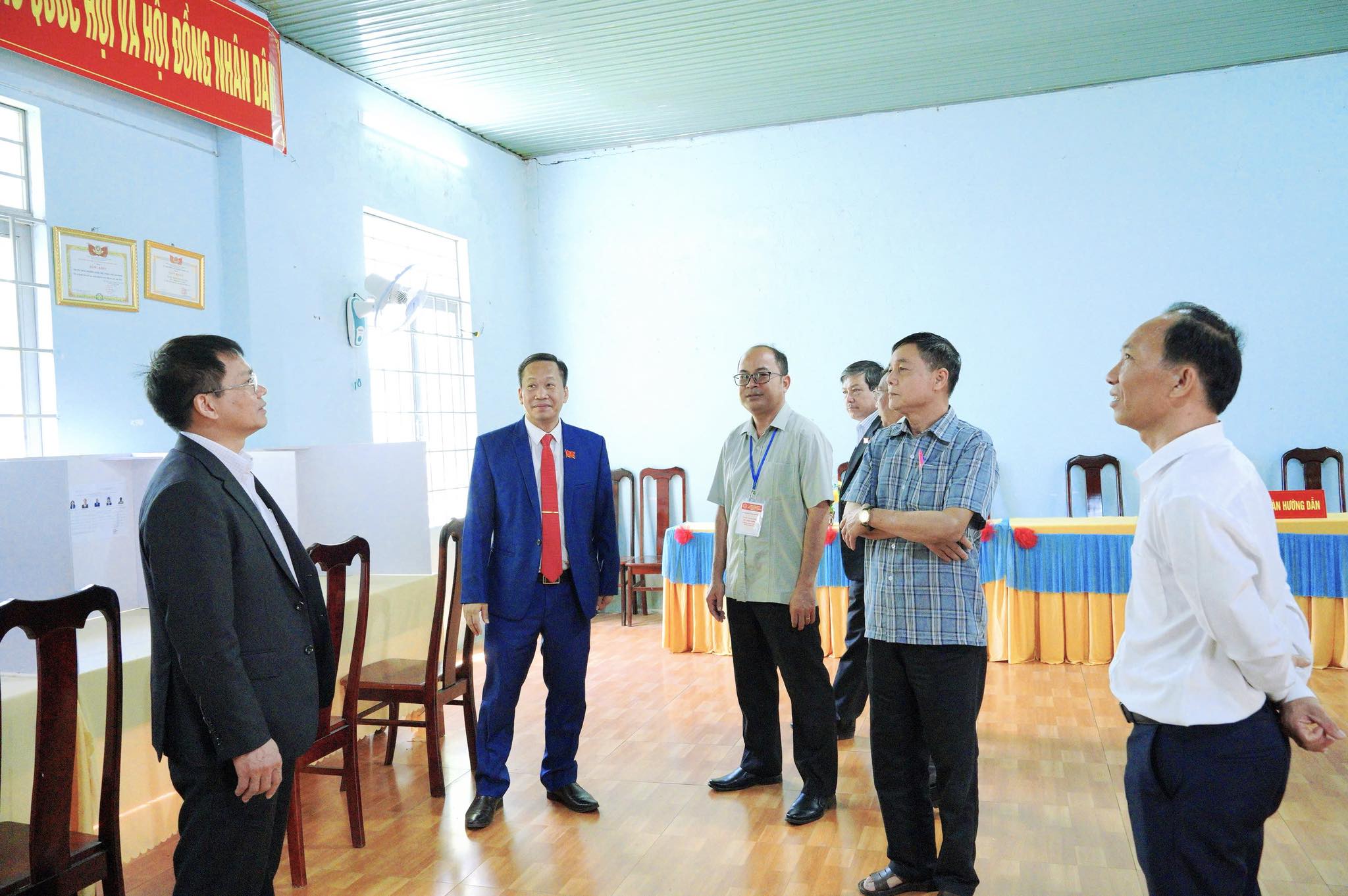 (Đoàn kiểm tra kiểm tra thực tế tại các điểm bỏ phiếu)