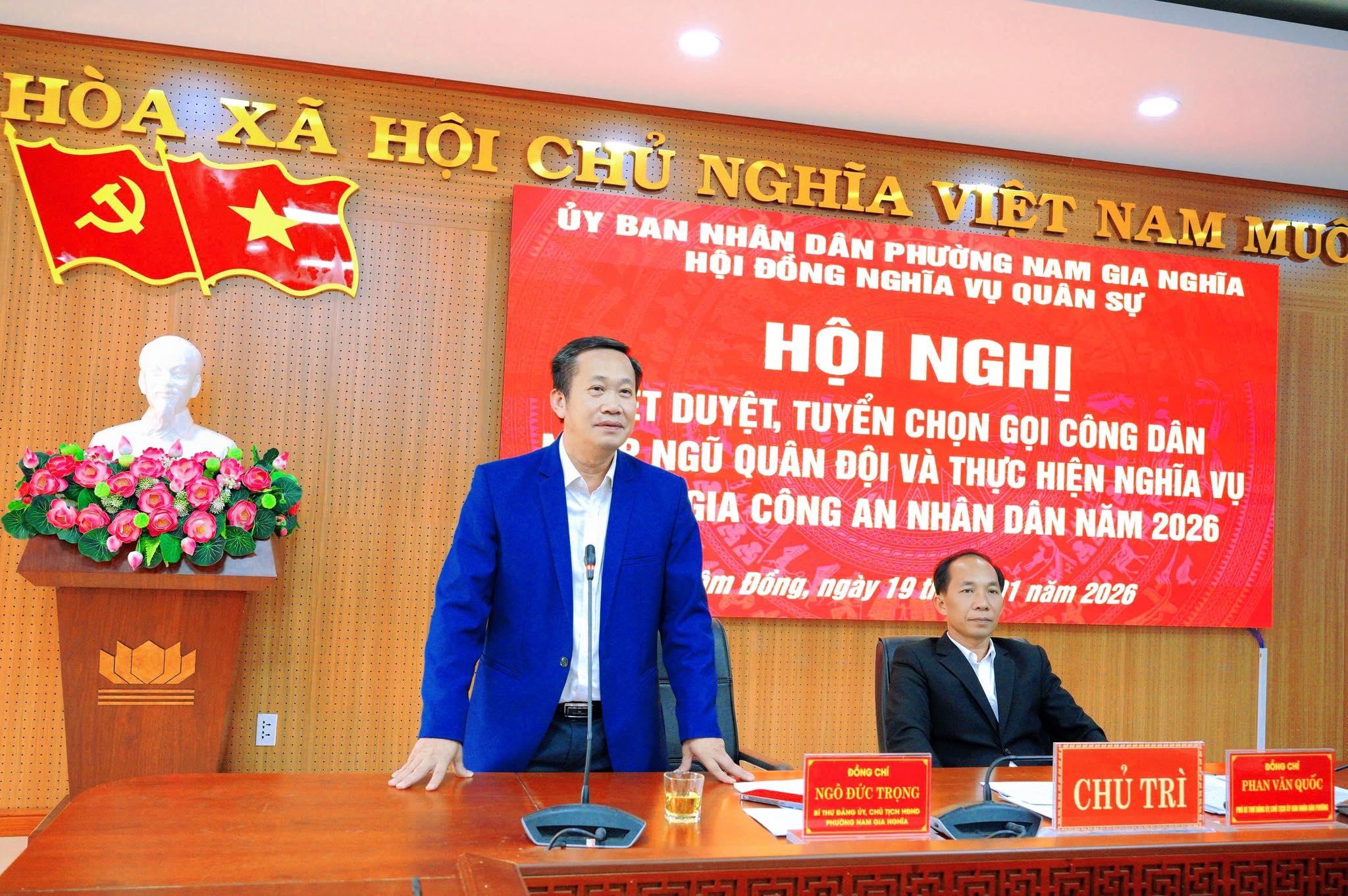 ☘️ Phát biểu chỉ đạo tại hội nghị, đồng chí Ngô Đức Trọng – Bí thư Đảng ủy, Chủ tịch HĐND phường ghi nhận và đánh giá cao tinh thần trách nhiệm của Hội đồng Nghĩa vụ quân sự phường; đồng thời yêu cầu địa phương tiếp tục thực hiện nghiêm các quy định, quy trình trong tuyển chọn, gọi công dân nhập ngũ, bảo đảm chất lượng chính trị, đạo đức và sức khỏe của tân binh. Kết luận hội nghị, đồng chí Phan Văn Quốc – Phó Bí thư Đảng ủy, Chủ tịch UBND phường, Chủ tịch Hội đồng Nghĩa vụ quân sự phường nhấn mạnh: Công tác tuyển quân phải được thực hiện đúng luật, đúng quy trình, công khai, minh bạch; tuân thủ nghiêm Luật Nghĩa vụ quân sự, Luật Công an nhân dân và các văn bản hướng dẫn, bảo đảm công bằng, dân chủ, không để xảy ra sai sót, tiêu cực và khiếu kiện. Đồng chí khẳng định, công tác tuyển quân là nhiệm vụ chính trị quan trọng, là thước đo tinh thần trách nhiệm và năng lực lãnh đạo, chỉ đạo của cả hệ thống chính trị ở cơ sở; tin tưởng phường Nam Gia Nghĩa sẽ hoàn thành tốt nhiệm vụ tuyển chọn, gọi công dân nhập ngũ và tham gia nghĩa vụ Công an nhân dân năm 2026, bảo đảm đủ số lượng, nâng cao chất lượng, đúng quy định.